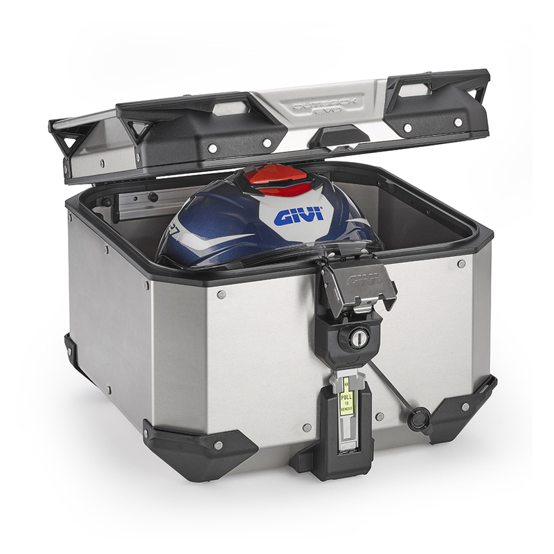 Η Trekker Outback EVO SMART 42 είναι η νέα κεντρική βαλίτσα της GIVI, κατασκευασμένη εξ ολοκλήρου από αλουμίνιο και διαθέτει το σύστημα MONOKEY® για ασφαλή και εύκολη προσάρτηση. Ο μηχανισμός Security Lock εγγυάται τη μέγιστη ασφάλεια, ενώ οι νέες γωνίες εξαλείφουν την ανάγκη για θηλιές ιμάντα και κάνουν την προσάρτηση στις σωληνοειδείς λαβές πιο ασφαλή.
