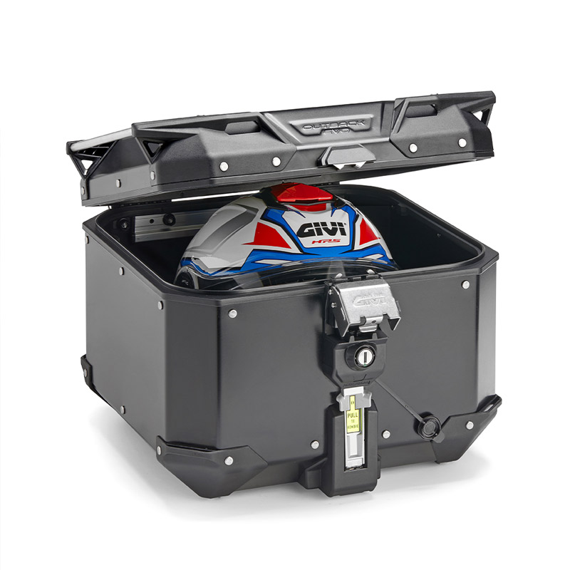 Η Trekker Outback EVO SMART 42 είναι η νέα κεντρική βαλίτσα της GIVI, κατασκευασμένη εξ ολοκλήρου από αλουμίνιο και διαθέτει το σύστημα MONOKEY® για ασφαλή και εύκολη προσάρτηση. Ο μηχανισμός Security Lock εγγυάται τη μέγιστη ασφάλεια, ενώ οι νέες γωνίες εξαλείφουν την ανάγκη για θηλιές ιμάντα και κάνουν την προσάρτηση στις σωληνοειδείς λαβές πιο ασφαλή.